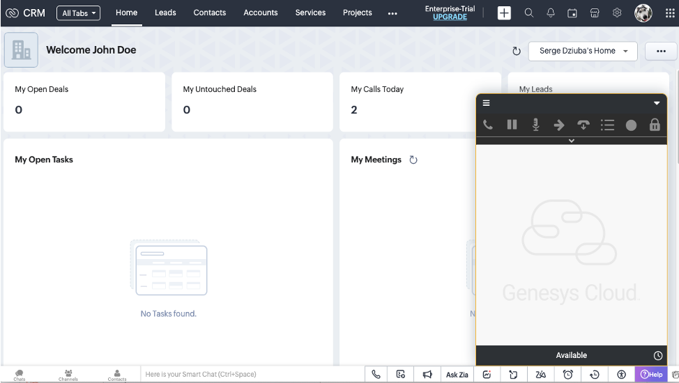 Now you can open the Genesys Cloud connector for Zoho CRM.